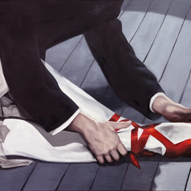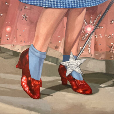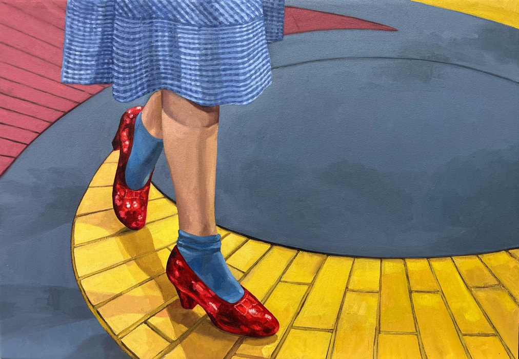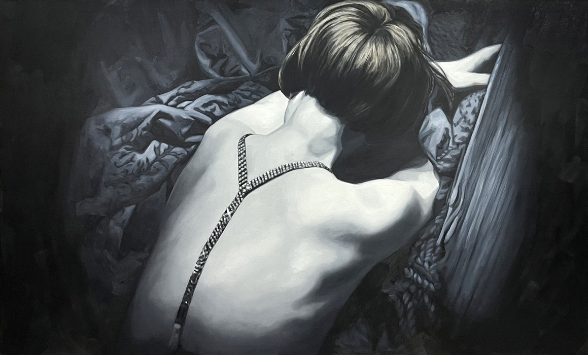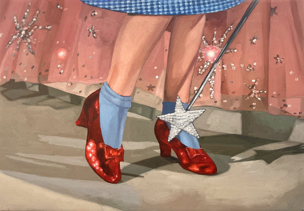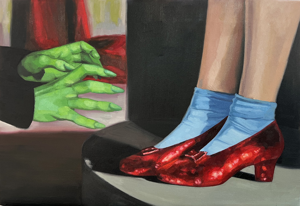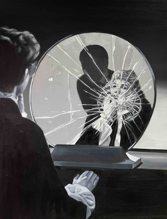 A couple of years earlier, in 1944, Gaslight, Georges Cukor’s film in which Ingrid Bergman plays a woman manipulated by her husband, who makes her believe she is going insane, was released. Film historian José Luis Sánchez Noriega points out in an essay on film noir that the actress ‘’had to demand, even to the point of tears, that producer Selznick include her name in the credits with the same prominence as Charles Boyer’s (her co-star)’’. Bergman, doubly a victim, in reality and in fiction. In neither life is there any escape from the role. Cristina Toledo transfers stills from Hollywood films to the canvas with the aim of generating a new perspective. The old answers are no longer sufficient for the new questions. She urges us to break free from the autopilot of unquestioning acceptance and to activate self-awareness. Vivian Gornick defines this concept as ‘’the feminist practice of examining one’s own personal experience from the perspective of machismo, the theory that explains the subordinate position of women in society as a result of the cultural decision to confer direct power on men and indirect power on women’’. While the system shouts at you to be feminine and smile, the artist seeks to deactivate sins (Norma Jeane is not to blame) and set in motion the mechanism of self-awareness that will drive us to be our own masters so that no one tells our story for us.”